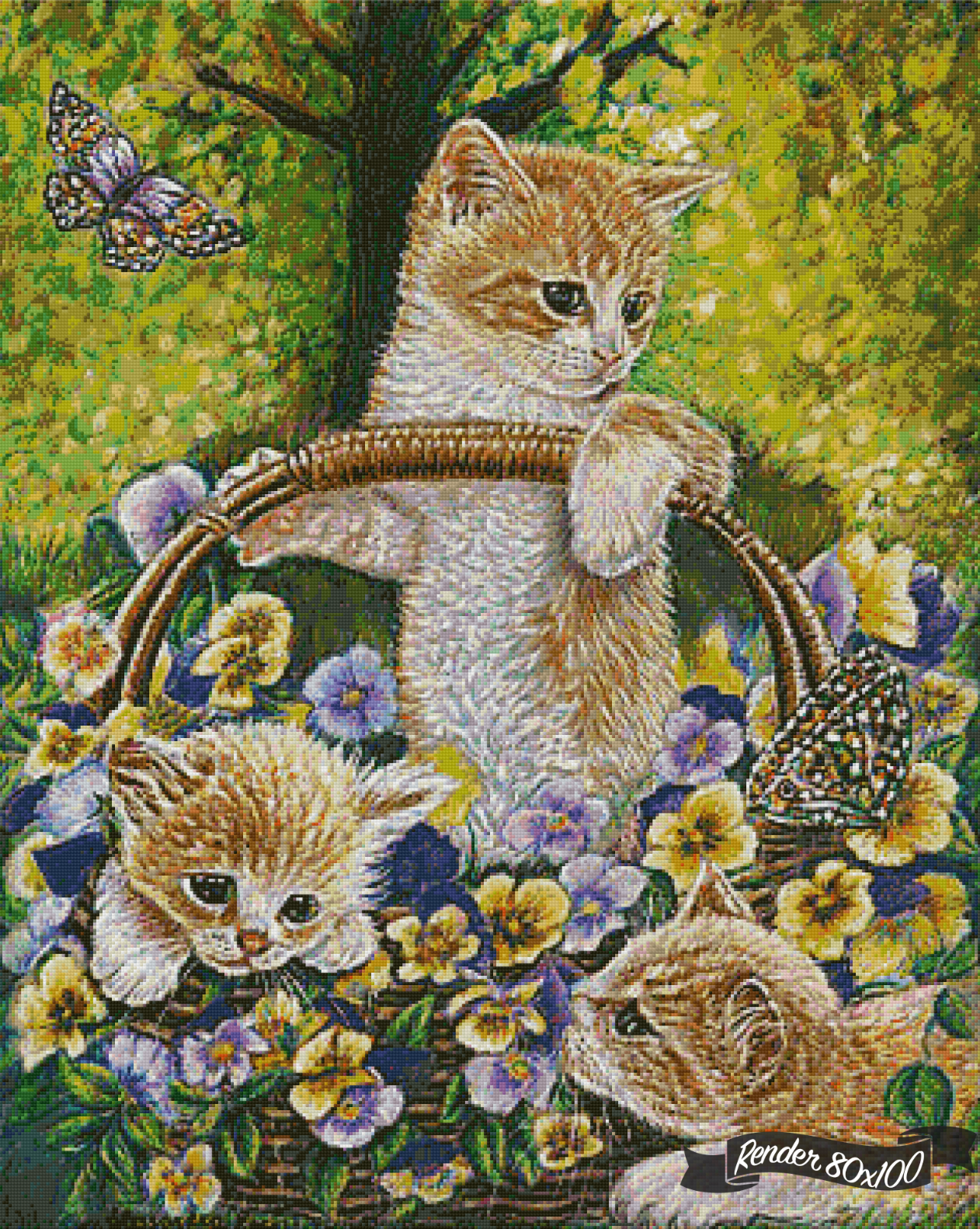 Cute Kittens In A Flower Basket - Available in Round or Square Drill